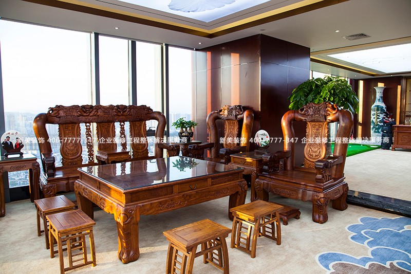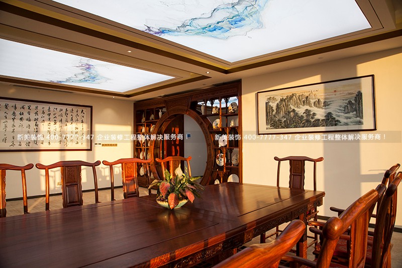 董事長辦公室使用了大量的實木家具,明靜空靈,入內讓人感受到無比的莊嚴而靜謐大包間,空間寬闊,傳統(tǒng)的裝飾造型,與色彩搭配互為融入,讓整個包間莊重而富有溫馨感。