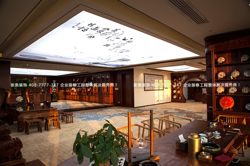 譽園房地產是深圳市的一支引領房地產業(yè)科技創(chuàng)新的地產新軍,位于龍崗區(qū)中心城萬科天譽中央廣場。本辦公室大量引入現(xiàn)代技法與典型中式元素的裝修風格來結束固有思維模式的束縛,讓整體辦公室空間極具厚重、雅然之意以及內斂的藝術美感。